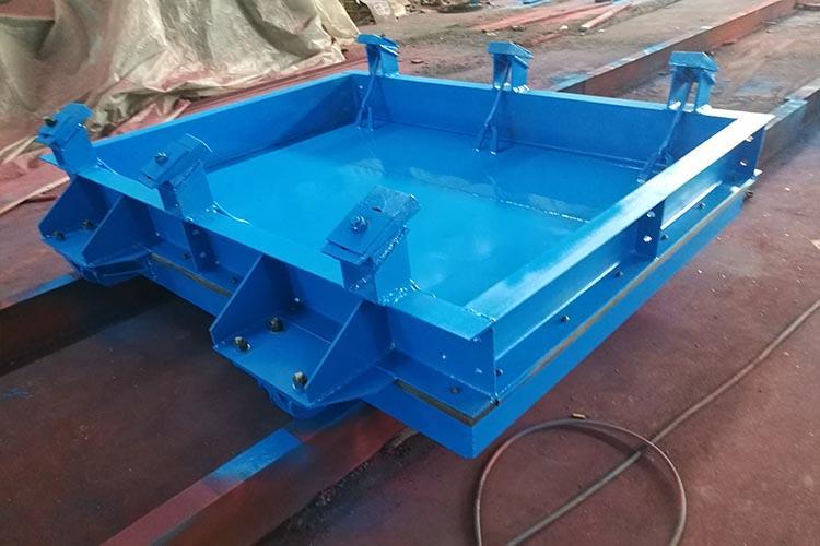 防水防火密閉門是煤礦井下主要的安全防護(hù)門之一,用于井下主變電所和主排水泵房通往井底車場的通道內(nèi),容易關(guān)閉,以防止水的突然浸入,承受壓力可達(dá)98KPa。防水防火密閉門門扇為平鋼板、井字筋板、圈梁等組焊而成,門框?yàn)椴垆摗⒐ぷ咒摻M合框架結(jié)構(gòu),拉緊裝置為楔形滑塊楔緊,安裝時(shí)按我廠原有設(shè)計(jì)將門組裝好,按照事先預(yù)留好的位置將門與硐室門口連成一體。